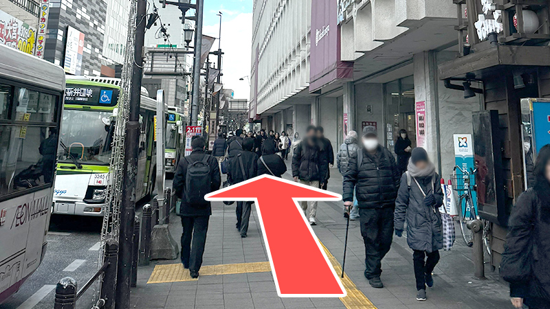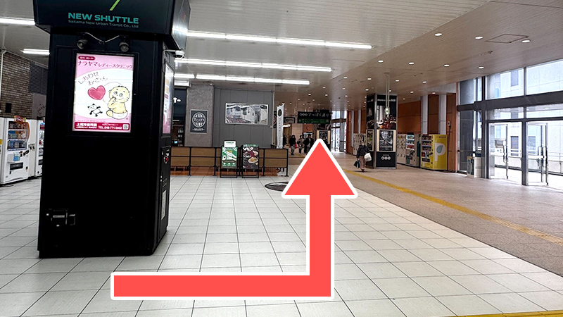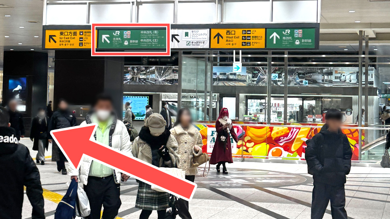 1. ニューシャトルの改札を出て左に曲がり、JR 中央改札へ向かって直進します。