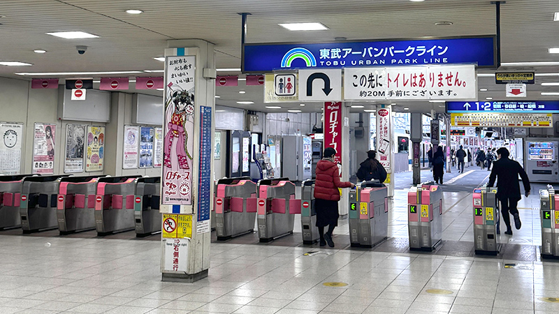 1. 東武アーバンパークラインの改札を出てエスカレーターを上ります。