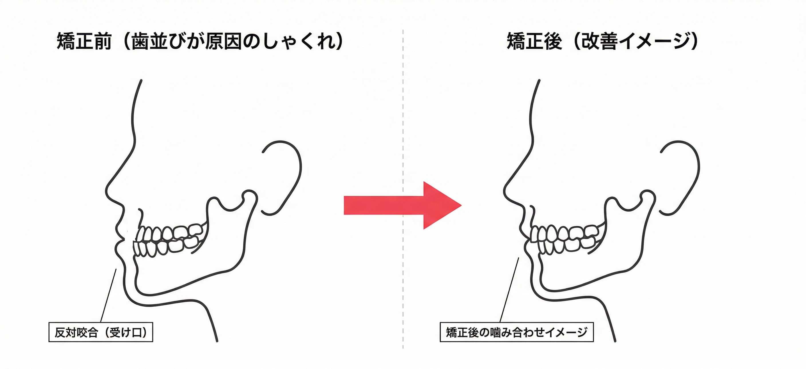 - 歯並びが原因のしゃくれなら、矯正で治る